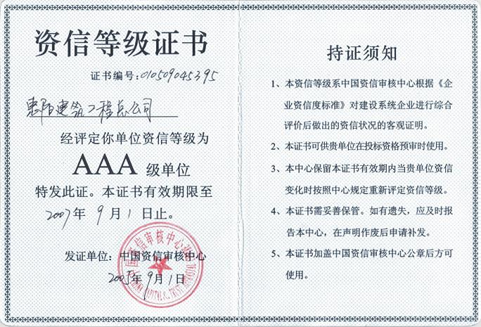 資信等級證書